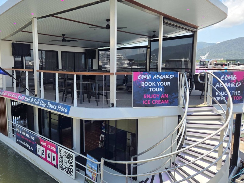 Check in at D Finger, Cairns Marlin Marina, from 11:30 am. The crew will welcome guests, complete the safety briefing and gear setup. The vessel departs promptly at 12:00 pm.